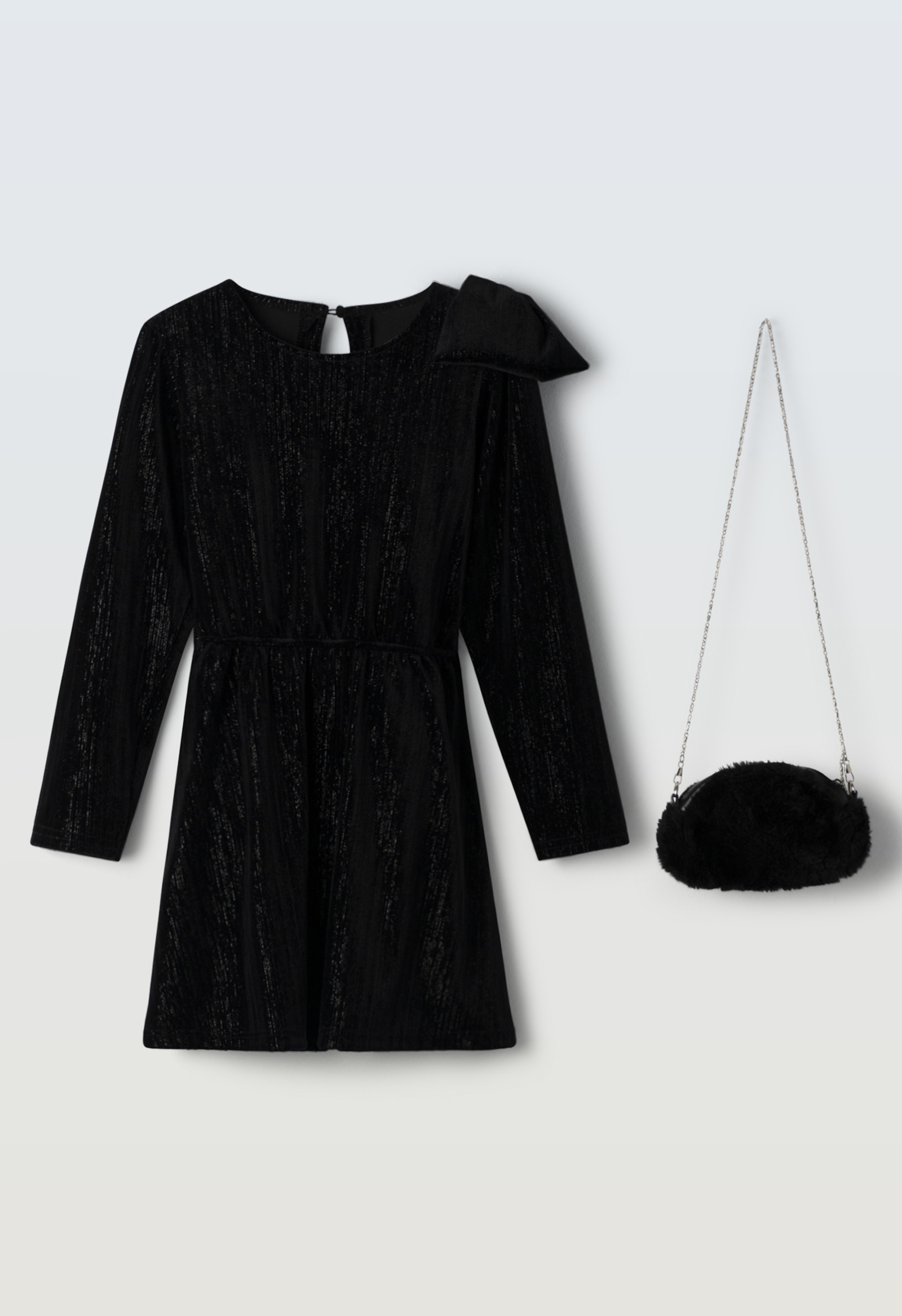 Παιδικό φόρεμα γυαλιστερό με τσάντα