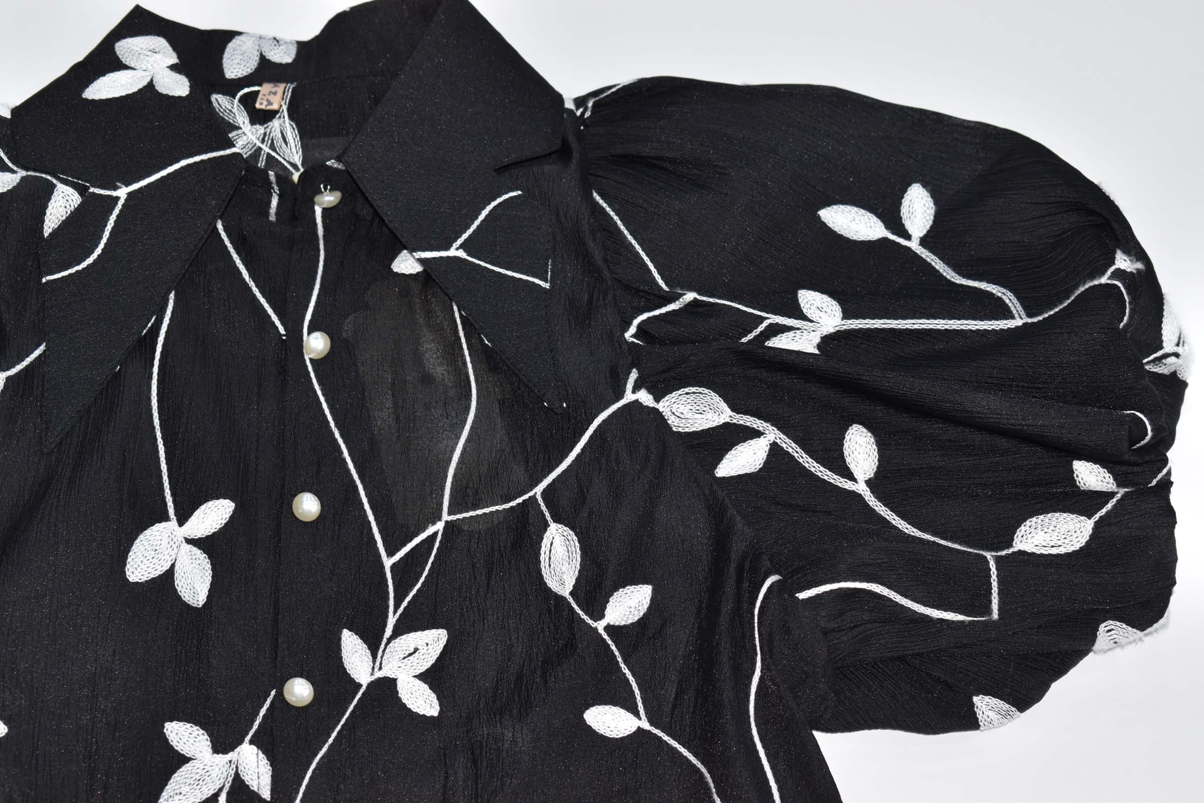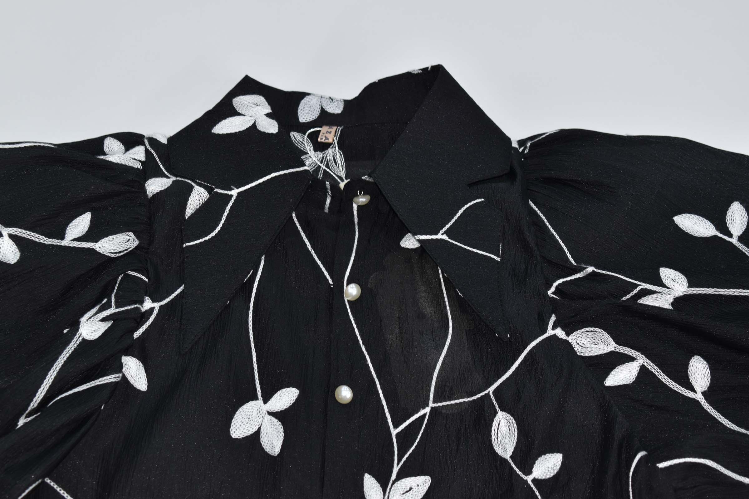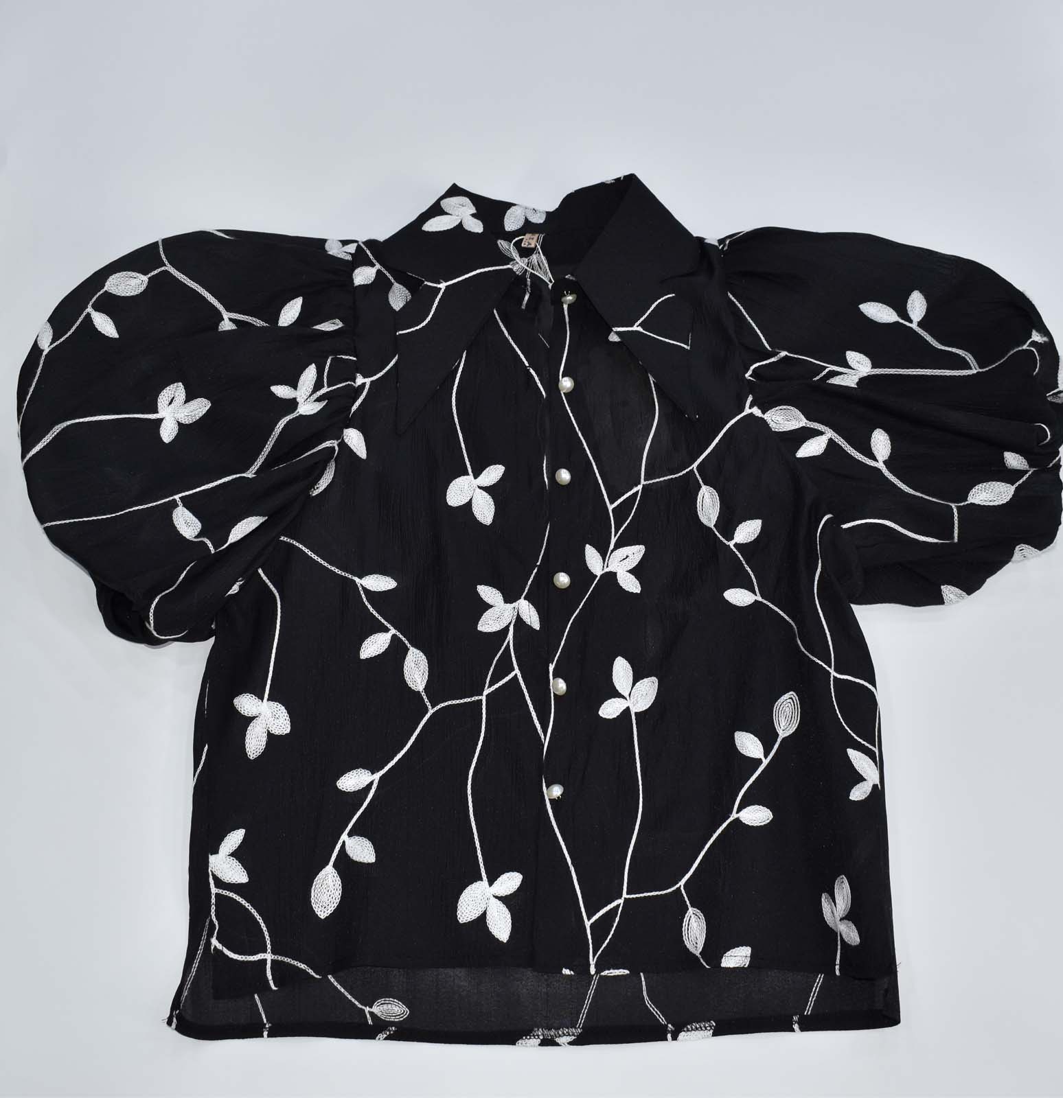 Πουκάμισο σιθρού με κεντήματα σε όλο το ύφασμα , φούσκα μανίκι και φανελάκι έξτρα στο ίδιο χρώμα να φορεθεί εσωτερικά