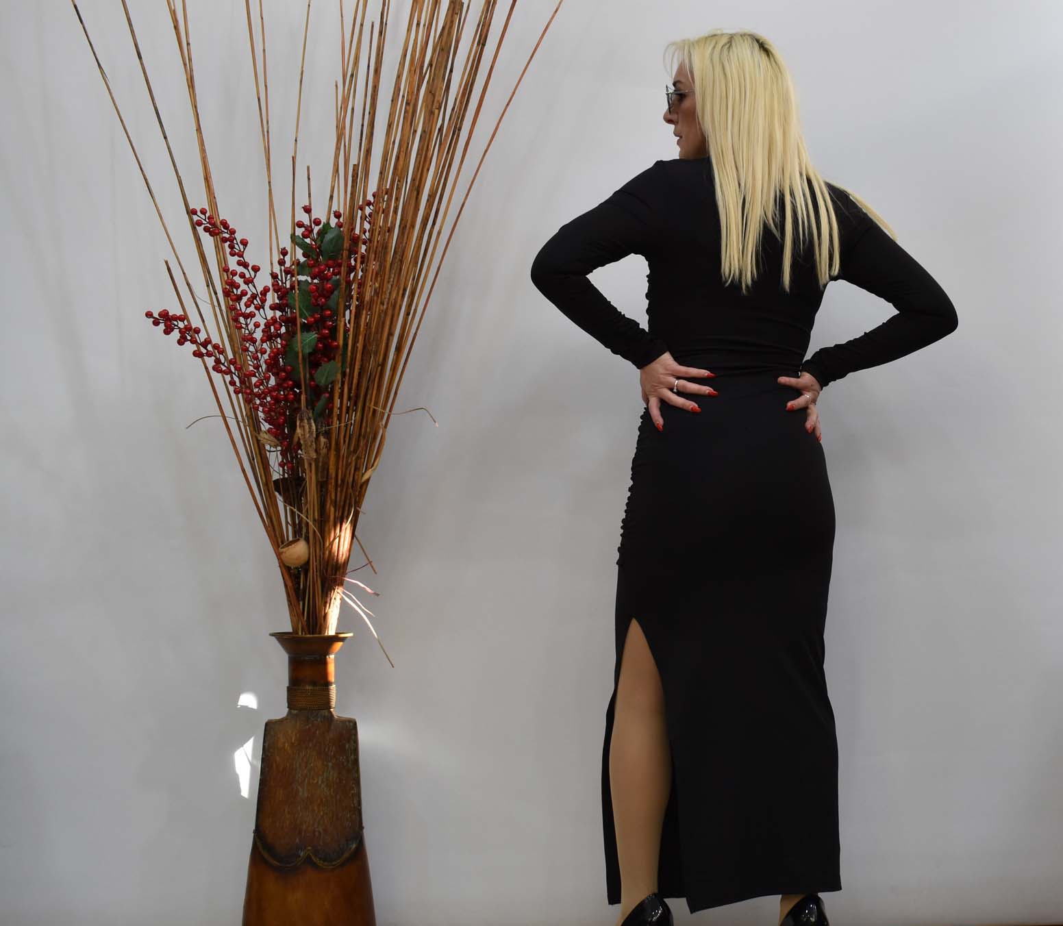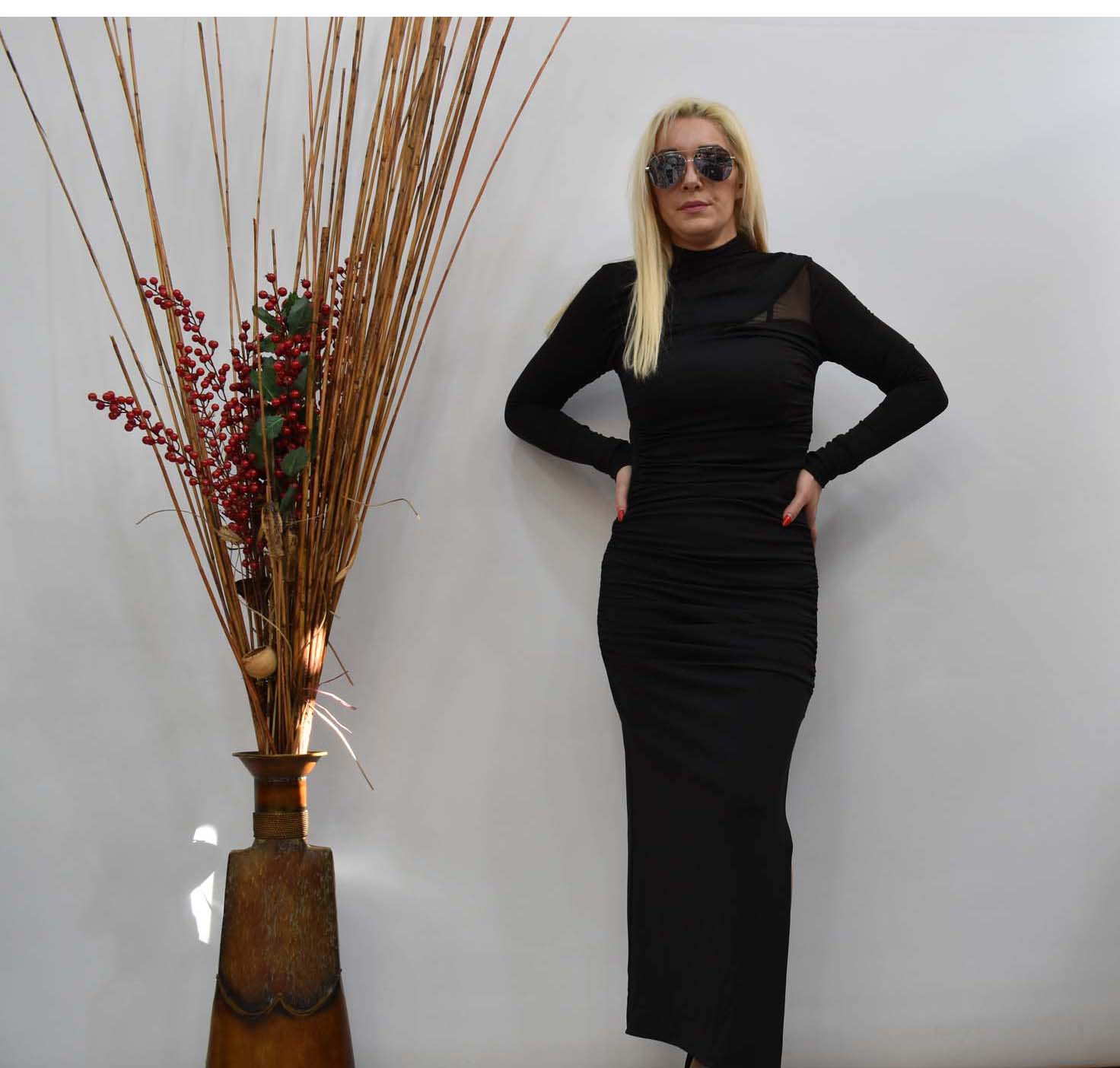 Φόρεμα με υπέροχο σχίσιμο και μικρή διαφάνεια στον ώμο