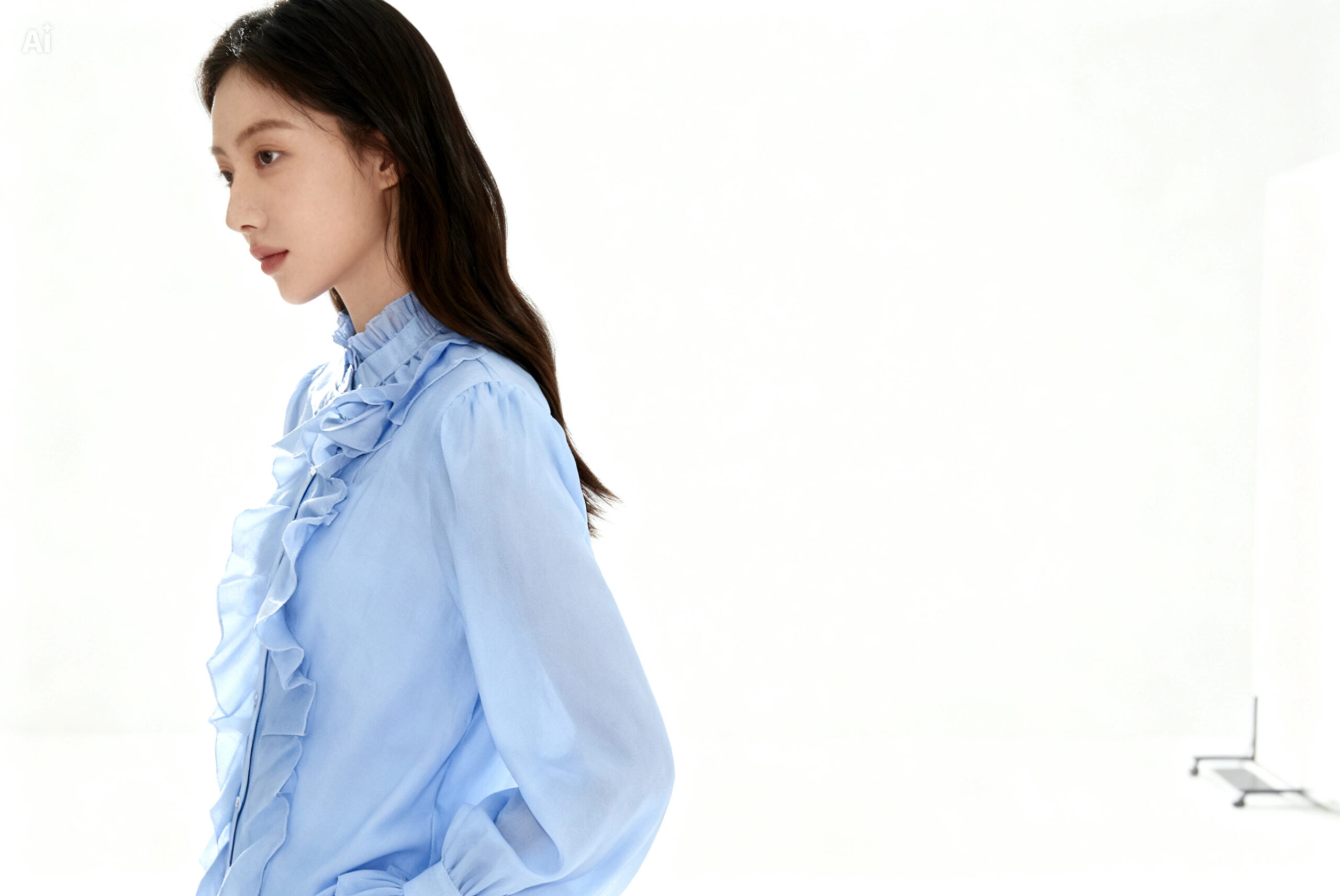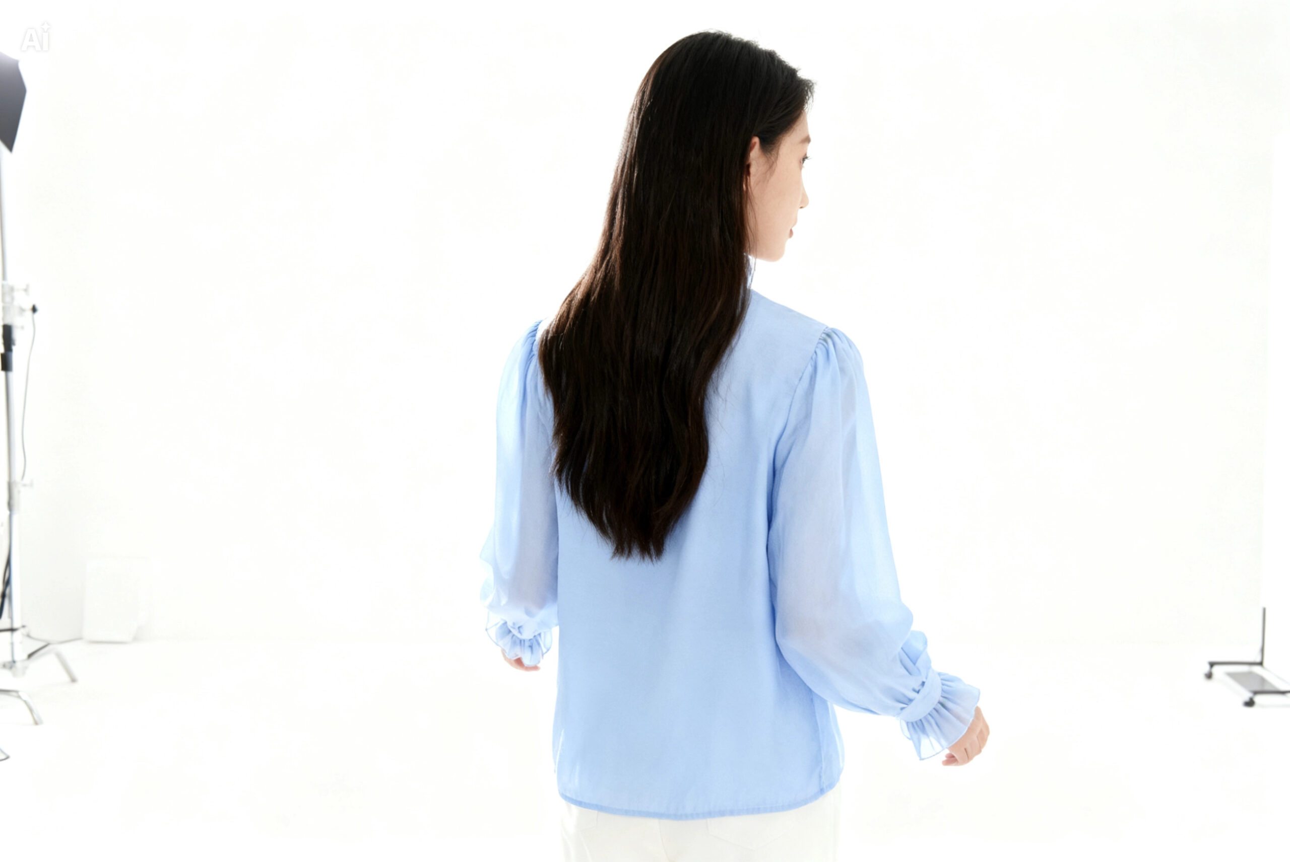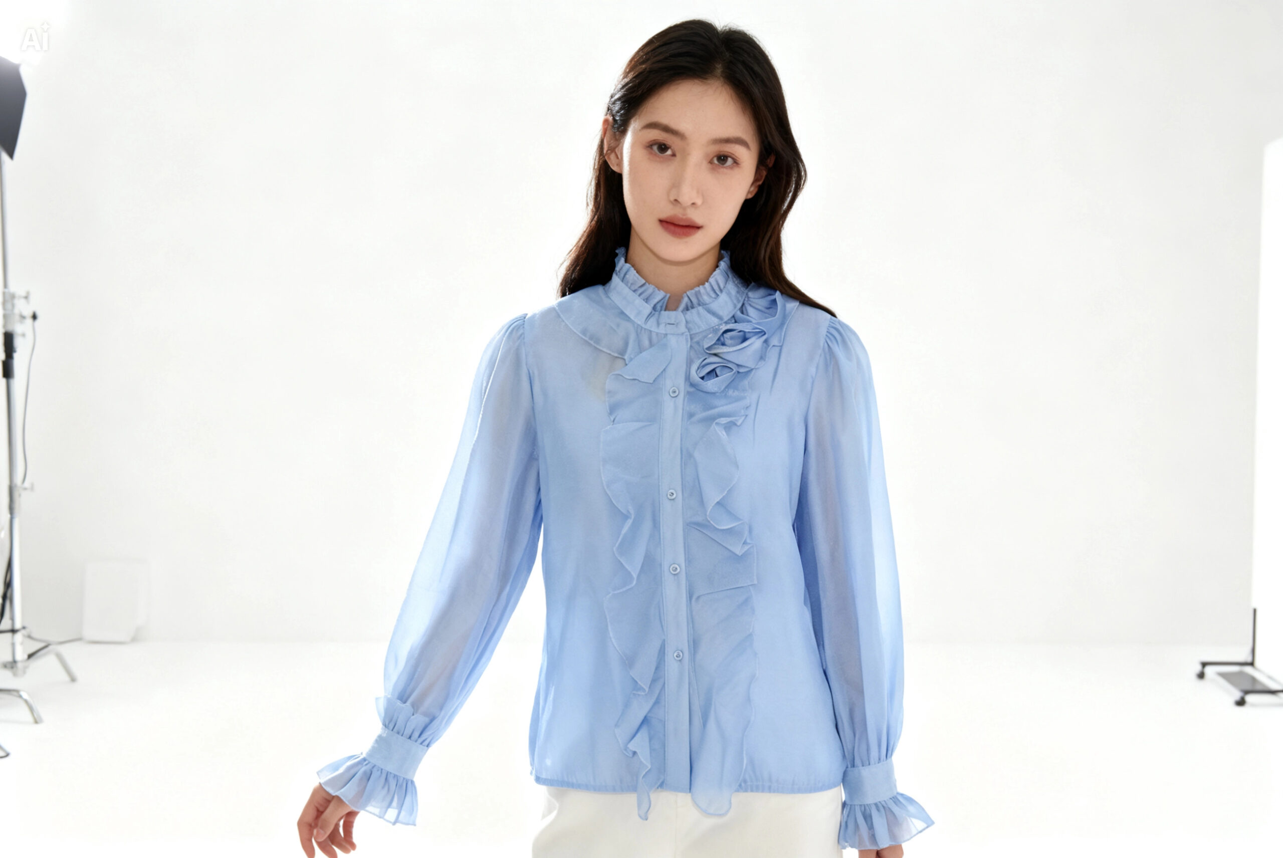 Γυναικείο μάο σιθρού πουκάμισο με φούσκα μανίκι με σχέδια από το ίδιο ύφασμα