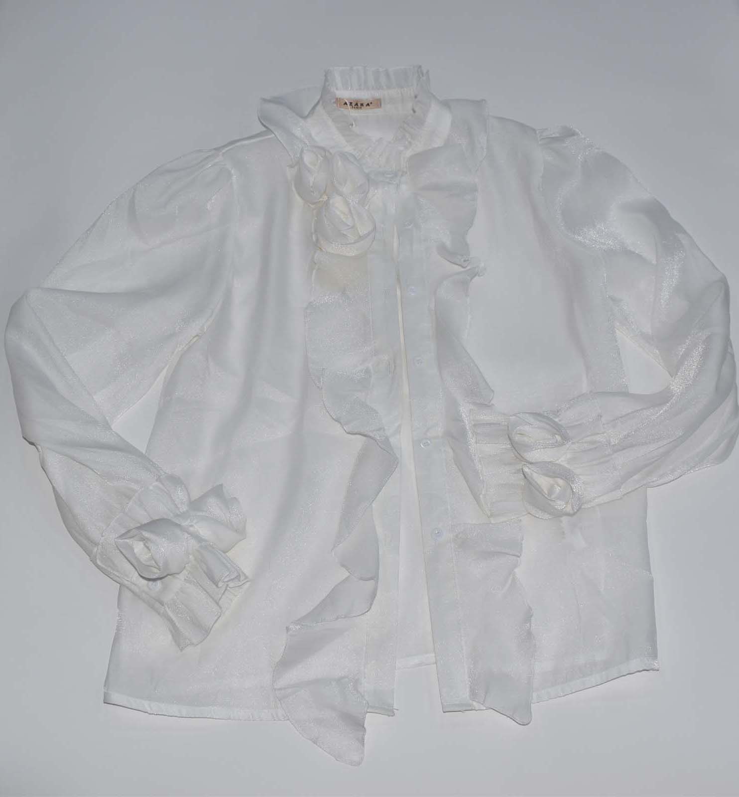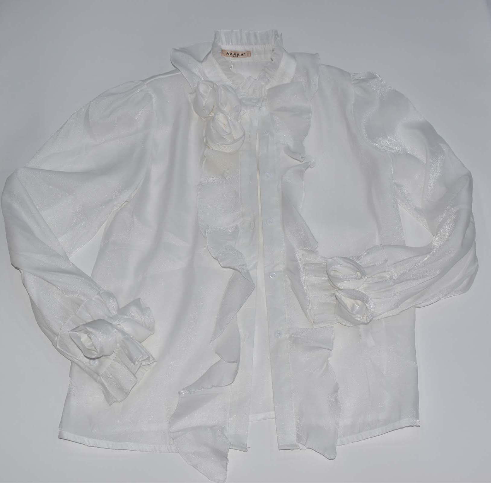Γυναικείο μάο σιθρού πουκάμισο με φούσκα μανίκι με σχέδια από το ίδιο ύφασμα