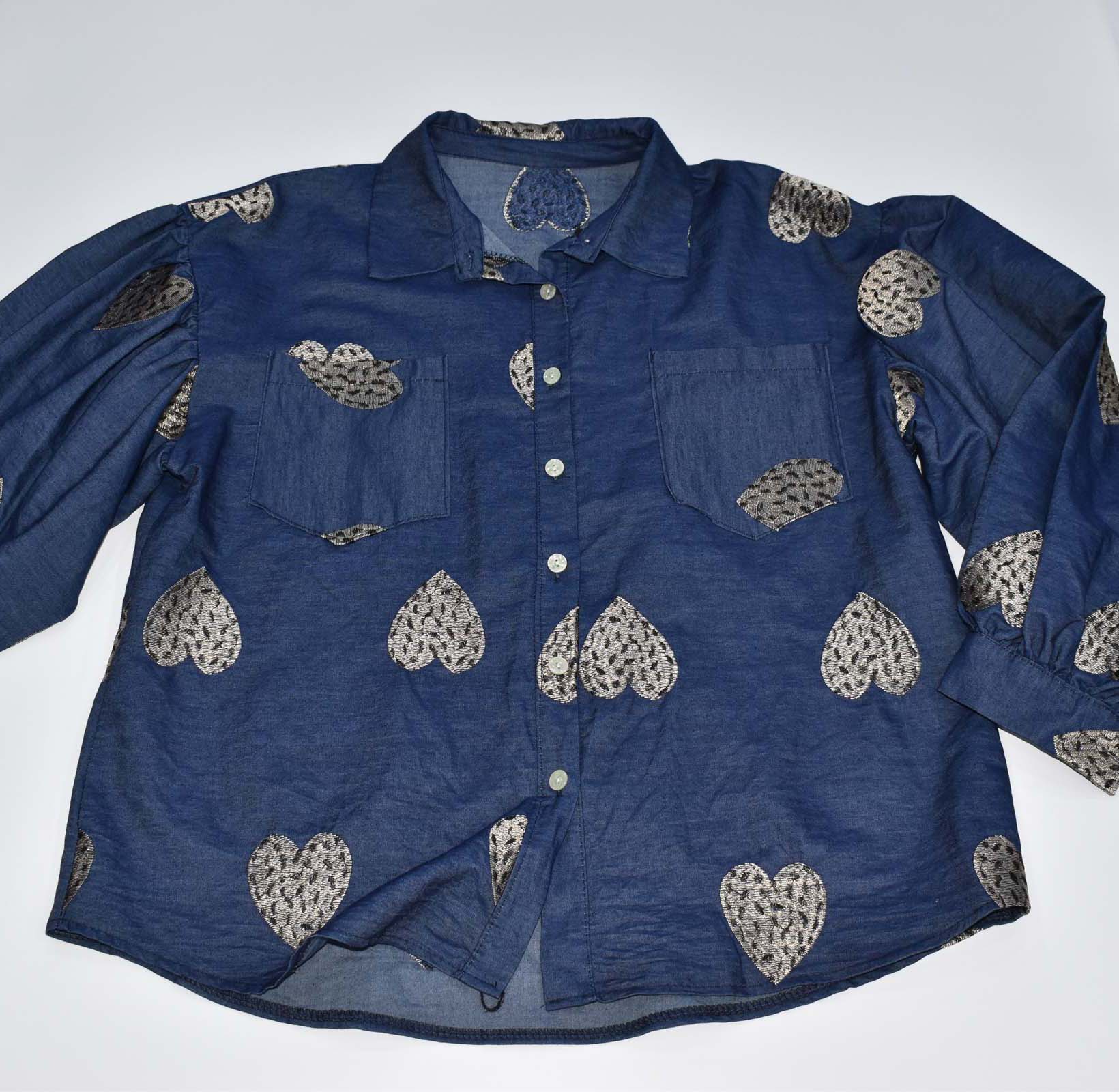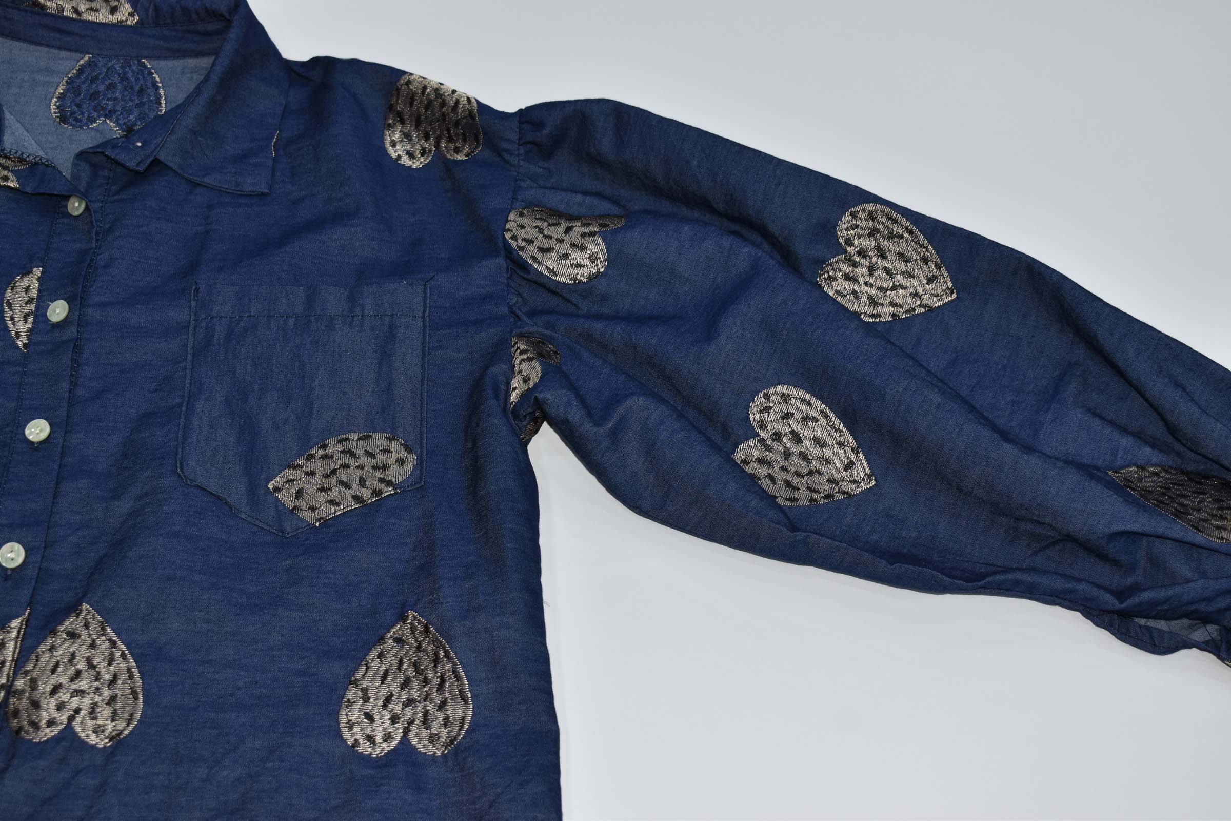 Με κεντημένες καρδιές και με φούσκα μανίκι, μπορεί να φορεθεί και ελεύθερο χωρίς δέσιμο στο μπροστινό μέρος.