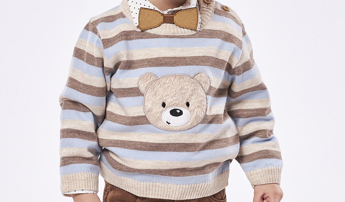 4 τεμάχια μπλούζα πλεκτή , πουκάμισο, υφασμάτινο παντελόνι και παπιγιόν