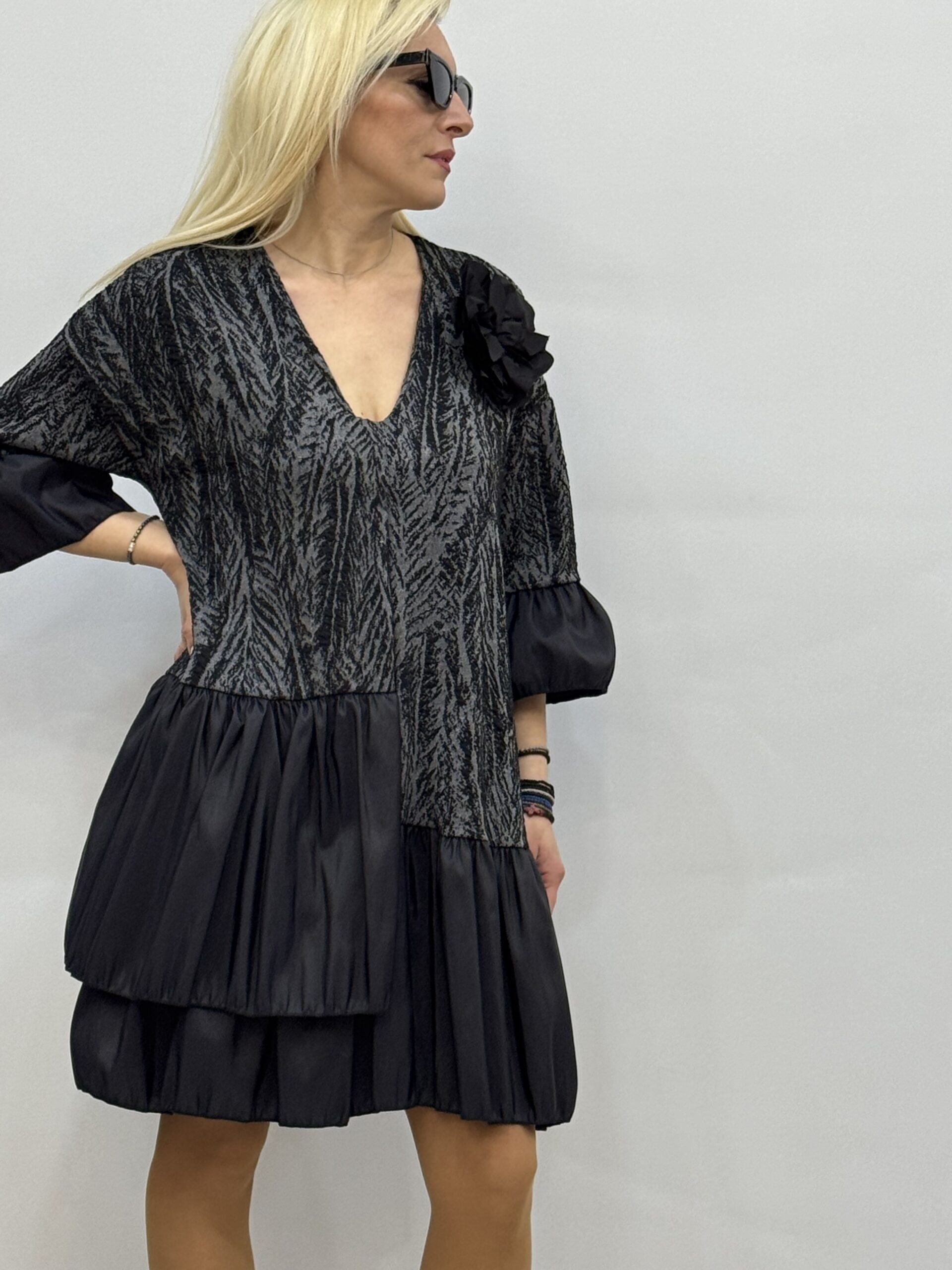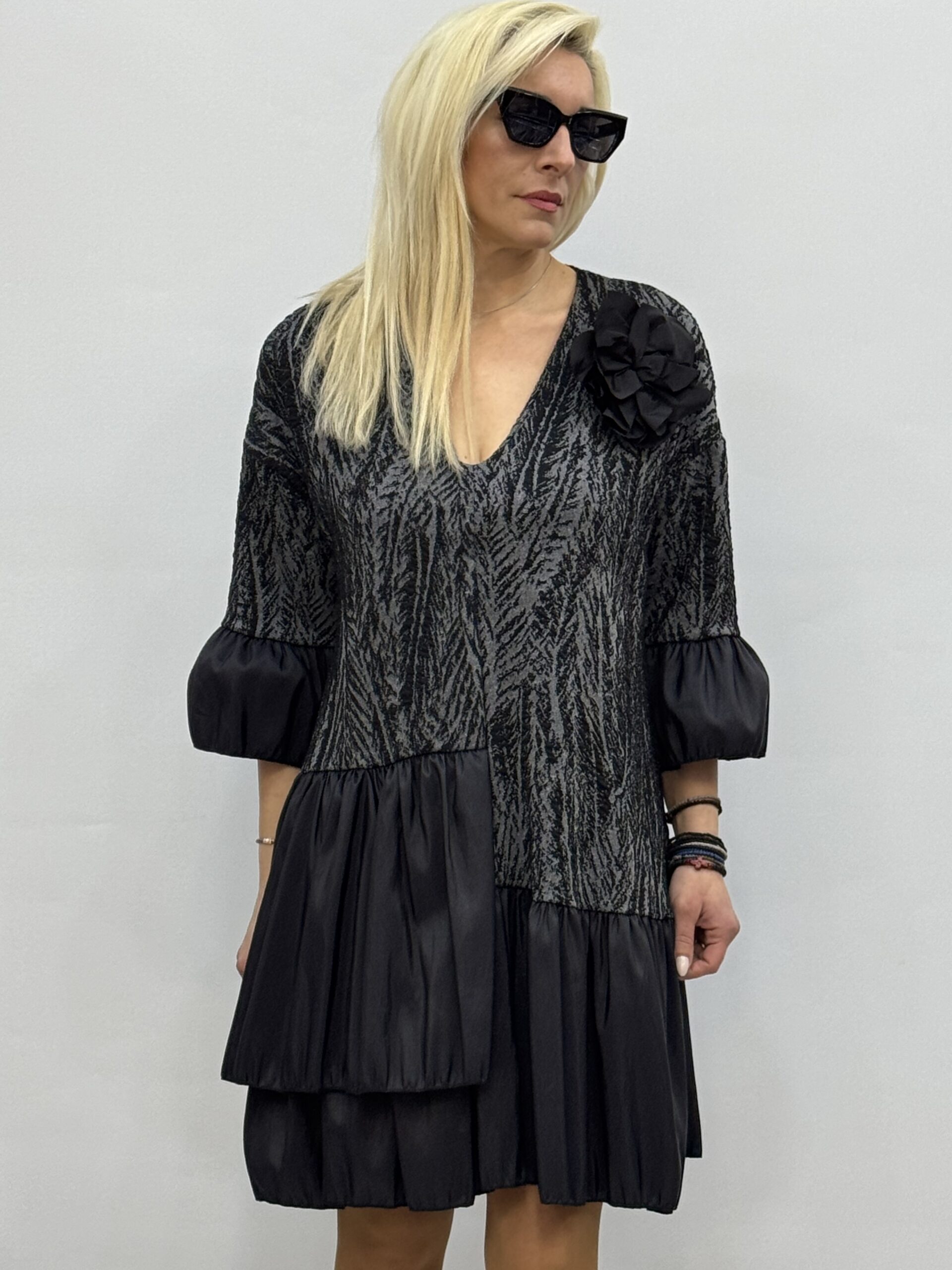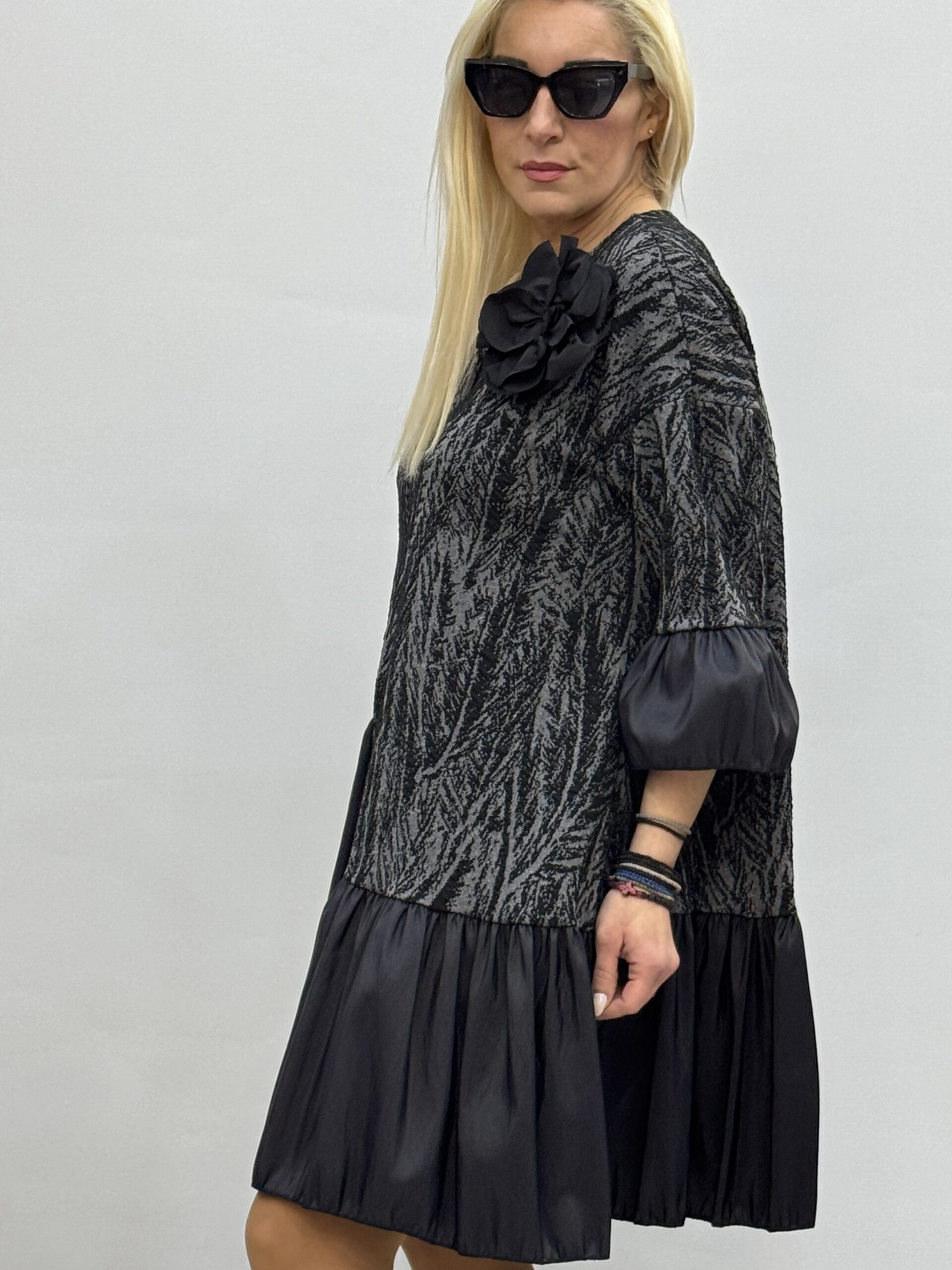 Φόρεμα μίνι με 3/4 μανίκι με αποσπώμενο λουλούδι