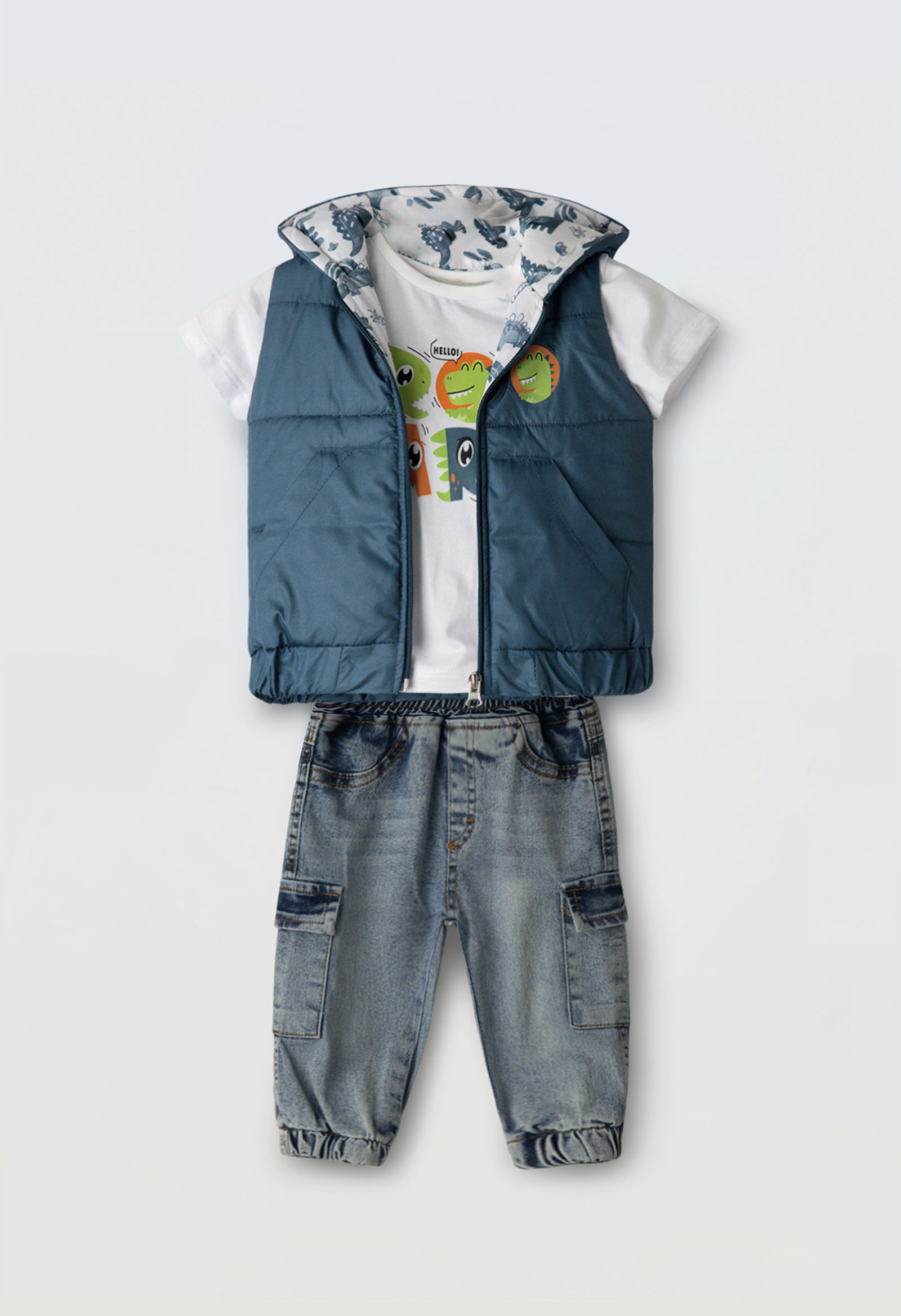 Βρεφικό σετ με Αμάνικο Μπουφάν 9-24m Petrol-Jean Hashtag 266618